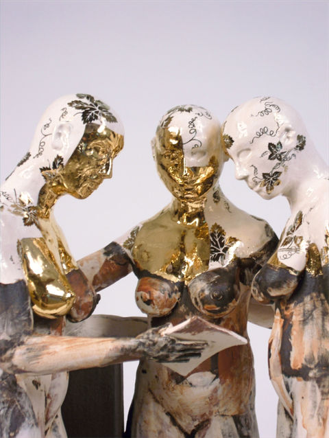 This series of work came after a conversation with a fellow artist centered around deserving to achieve your own success through the things you enjoy doing. we all battle our inner demons each day and as some of my work is getting more personal I wanted the idea of learning to appreciate and love the person you are. Part of the reason I now work as an artist is to aspire to be better, to be the best I can be. Instead of maybe what I am second best at. after lots of thought and experiments, it manifested itself as a golden being pealing back a layer of ceramic skin. Ceramics are often viewed as a poor relation in the art world so it's been the perfect way to reflect this concept which also makes a statement about the material itself.